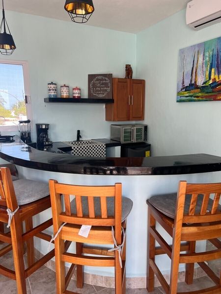 * Upstairs suite with living room, bar, kitchen and large bedroom with screened in balcony