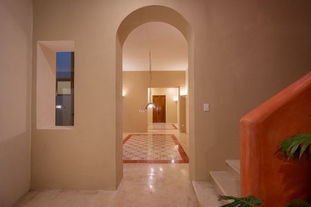 This beautiful, renovated house, located in Barrio de Santiago, is a captivating blend of history and modernity in the heart of downtown Merida. As you step inside, the pasta tile floors greet you, reminiscent of the city's rich architectural heritage. The dining room, bathed in natural light, sets the stage for delightful gatherings. The living room is warm and comfortable. Adjacent, the well-appointed kitchen shines with its modern amenities. Discover ultimate luxury in four master suites, each with its own bathroom. Outside, the filtered swimming pool offers a refreshing retreat, while solar panels and inverter AC in every room ensure sustainability and comfort
