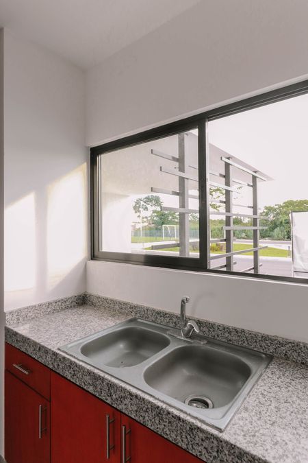 - Meseta de concreto reforzado y forrada granito en cocina.