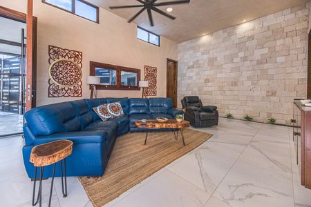 Casa K’iin tiene dos dormitorios secundarios de tamaño generoso cada uno con su propio vestidor y baño completo. En la parte trasera de la propiedad es el amplio dormitorio principal con su amplio vestidor, tocador de tamaño considerable y baño completo. Todas las habitaciones se abren a la zona de la piscina con puertas corredizas de cristal que proporcionan a cada espacio con amplia luz natural. ¡Todas las habitaciones dan al norte para maximizar la brisa!
