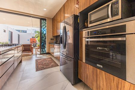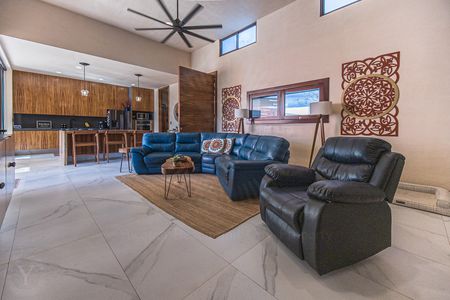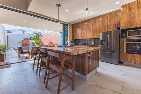 Casa K'iin es una espaciosa casa contemporánea de un solo piso situada en una zona tranquila, pero conveniente del norte de Mérida. Los compradores de vivienda encontrarán la ubicación perfecta para vivir a tiempo completo al estar a pocos minutos de las tiendas en Las Américas, a 10 minutos de las tiendas en el lado norte de Mérida y a sólo 30 minutos del Golfo de México Esta casa totalmente modernizada tiene todo los que ustedes necesita: 15 paneles solares, suavizador de agua, alberca con sistema de filtración, agua presurizada, internet, unidades mini-split, cochera para dos autos con puerta automática, y una sola planta.