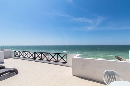 Situated Beachfront on the Emerald Coast of the Yucatan, Casa Kukulkan is distinguished by its breathtaking views from the 10 meter wide screened terrace perfect for enjoying the soothing ocean breezes and viewing the vibrant sunset.
