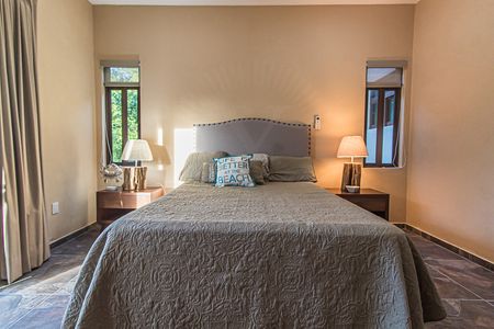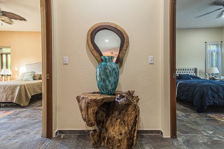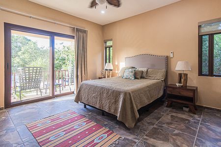Dos dormitorios de generosas dimensiones con impresionantes vistas de la vegetación circundante y un baño compartido completan el primer piso, proporcionando un lugar tranquilo para entretener a familiares y amigos.