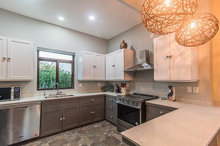 Esta residencia en segunda fila de playa ofrece un amplio espacio habitable de 332 metros cuadrados, cuidadosamente diseñado en dos plantas. La planta baja le da la bienvenida a una amplia zona de estar de planta abierta, donde el salón, el comedor y la cocina se fusionan a la perfección.