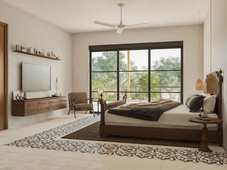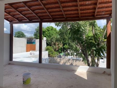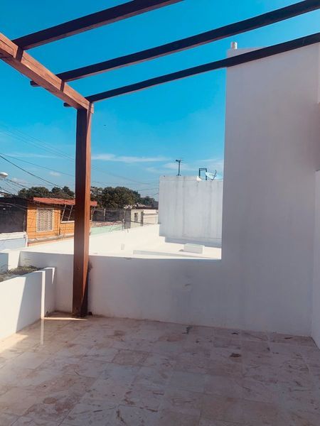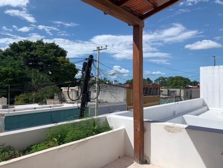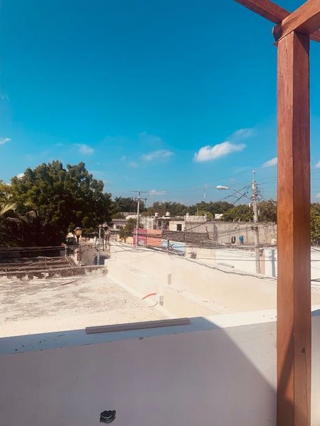 1 bedroom has its own bathroom + the view of the beautiful custom design planters and all the roofs of Merida city.