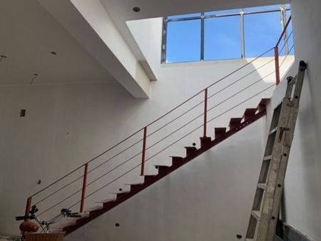 As soon as you enter, you are in the living-room, the dining room and you see the beautiful designed stairs.