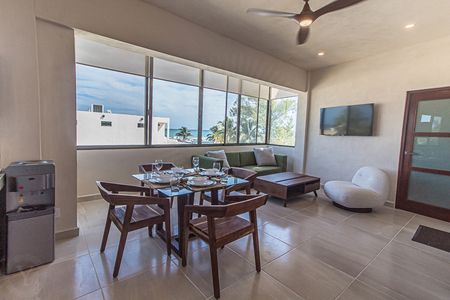 This exquisite 2 bedroom, 2.5 bathroom condo offers a harmonious blend of local craftsmanship with breathtaking views of the emerald waters of Chuburna Puerto, Progreso.