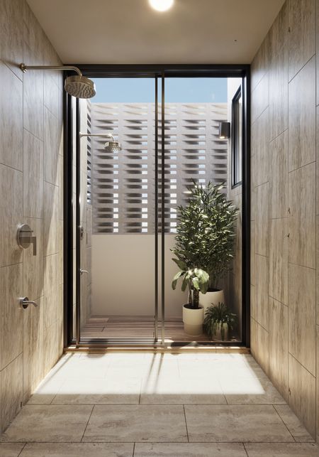 Habitación Principal con baño completo, regadera interior y exterior con Walk-in closet