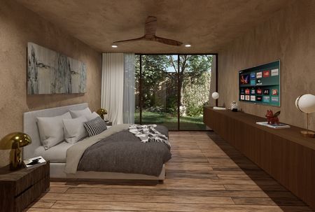 -Recámara principal con clóset vestidor y baño privado con acceso a un patio lateral.