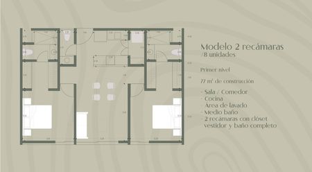 Modelo 2 recámaras con jardín/8 unidades Planta baja