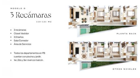 - 3 recámaras (116-121 m²)