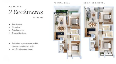 - 2 recámaras (76-79 m²)