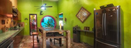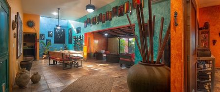 This marvelous one floor, 3-bedroom home is ideal for families and/or home-based business owners. It is a unique example of typical indoor Mexican hacienda style living.