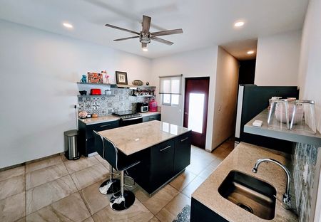The property is equipped with a propane water heater, Starlink and Telmex Fiber connectivity.  Additional amenities include a 120L propane tank, 197 m2 of construction on a 456 m2 lot, a fully walled backyard, an open garage, 3 AC units, ceiling fans throughout, 220V electric supply, city water, and a non-filtered pool.