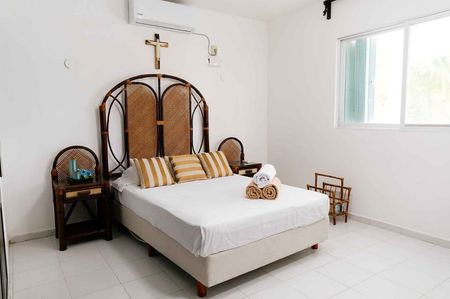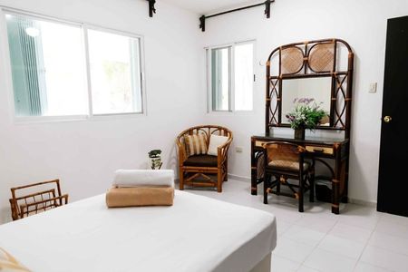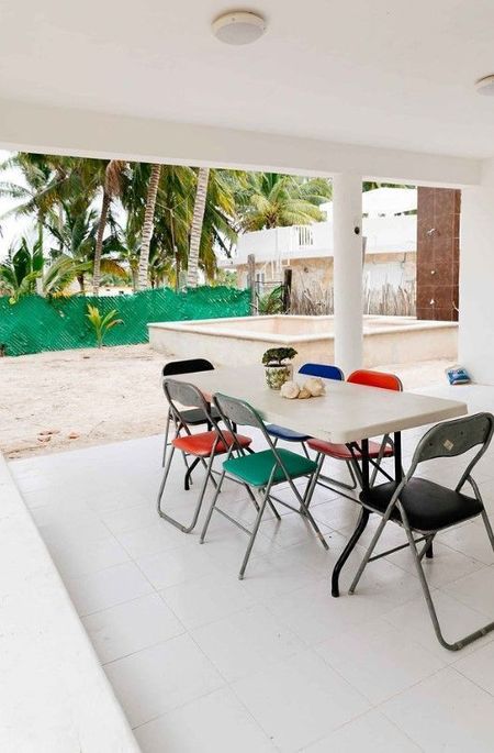 Dueño está pidiendo $35,000 pesos por mes. En Telchac Puerto esta casa se nombró como El Aquelarre por ser un punto de reunión de vacaciones entre amigos en la playa. Está situado en la entrada al poblado muy cerca de la gasolinera y a 100 metros del mar; caminando por la calle, en linea recta, llega a la playa en lo que se pone el bloqueador en a cara. La paz y silencio de la zona, las palmas de coco que adornan el rededor, sus dos comodas habitaciones, amplia piscina, todo lo necesario en la cocina y la terraza de atrás lo hacen un lugar maravilloso para descansar y vivir en la más grande vacación de tiempo completo que pudiera tener.
