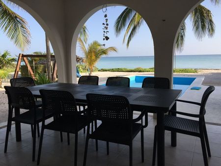 El dueño pide $35,000 pesos por semana por ésta linda casa ubicada en Chicxulub, cuenta con 3 acogedoras habitaciones, sala, comedor, cocina, 2.5 baños, cuarto de servicio con baño, terraza techada con vista al mar, piscina. Cocal con zona de estacionamiento. Equipamiento: aires acondicionados y ventiladores, amueblada, lavadora.