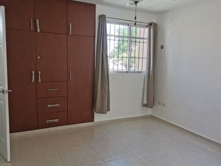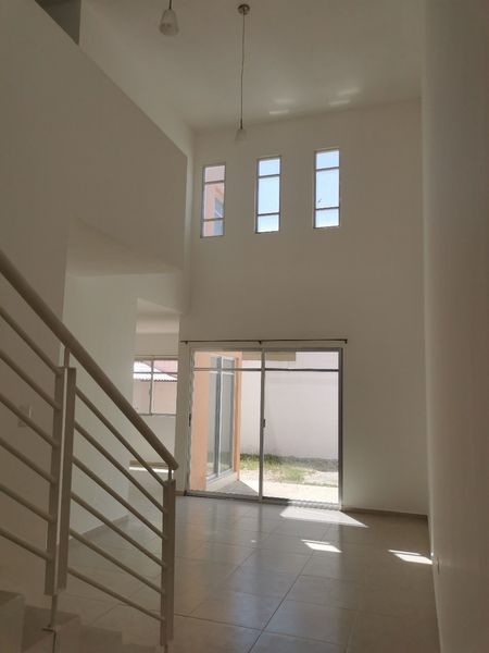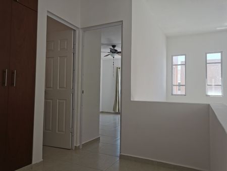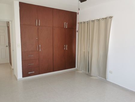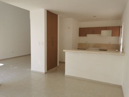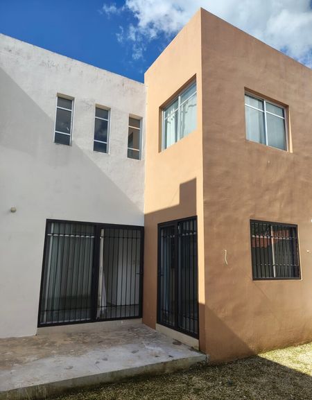 Precio de renta: $15,000 pesos. Casa de dos pisos en buen estado de mantenimiento. Se ubica está dentro del Fraccionamiento Gran San Pedro Cholul junto a un parque y un Oxxo. La sala tiene techo de doble altura y la cocina está vestida. Cuenta con 3 dormitorios, cada uno con closet y aparte un closet de blancos. Dos baños completos, un baño para invitados, 3 aires acondicionados, cuenta con protectores en las ventanas, calentador de agua nuevo y tanque de gas estacionario.