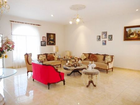 ¡Esta es la finca privada con la que has estado soñando! Esta casa está situada en un lote enorme que mide 2000m2. Esta casa personalizada fue diseñada en forma de una “L” proporcionando cada dormitorio con acceso directo a los jardines amurallados y piscina filtrada. El jardín tiene palmeras de date madura y hay incluso un arboreto de uva! Por supuesto, todo el jardín tiene riego automático. Hay una suite de invitados por separado. Las ventanas son todas arqueadas y proporcionan una luz maravillosa dentro. También hay un eje de ventilación que brinda maravillosas brisas en toda la residencia. Todas las puertas interiores están hechas de madera de cedro de la mejor calidad. La cocina es enorme y cuenta con un paseo en alacena, encimeras de granito, además de estantes de mármol! La entrada frontal es acogedora y se abre a la sala de estar y comedor formal. Los techos son de 3,5 metros de altura en toda la casa y los pasillos son de 2,5 metros de ancho. Suelos de cerámica en color neutro. 2 de las habitaciones comparten un baño jack y jill y un armario. La suite principal está al final de un pasillo largo y ancho con una entrada de doble puerta. El baño tiene una ducha de gran tamaño y cuenta con encimeras de mármol. Esta casa fue construida utilizando los mejores productos de calidad, no se ahorró ningún gasto! Esta casa tiene todo lo que pueda desear y está buscando! Situado muy cerca de los principales centros comerciales y fácil acceso a donde sea que necesite ir!