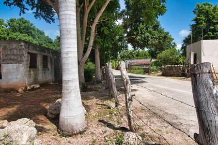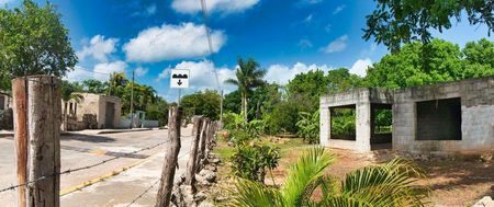 Este lote esquinero de más de una hectárea (1.003772) está ubicado a diez cuadras de la plaza principal de esta histórica ciudad. Está en la carretera principal que conecta Tizimin y Valladolid. El lote tiene una casa en construcción ubicada en el mismo. Esta estructura sin terminar tiene dos dormitorios y un baño, además de un gran plano de planta abierto para cocina, sala y comedor. Todo lo que necesita son sus toques finales. Hay una estructura de madera que se puede utilizar para almacenamiento o sala de estar. Hay dos pozos (uno profundo a 30 metros) en la propiedad, ambos con bombas. También hay un sistema de riego.