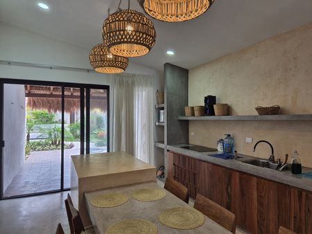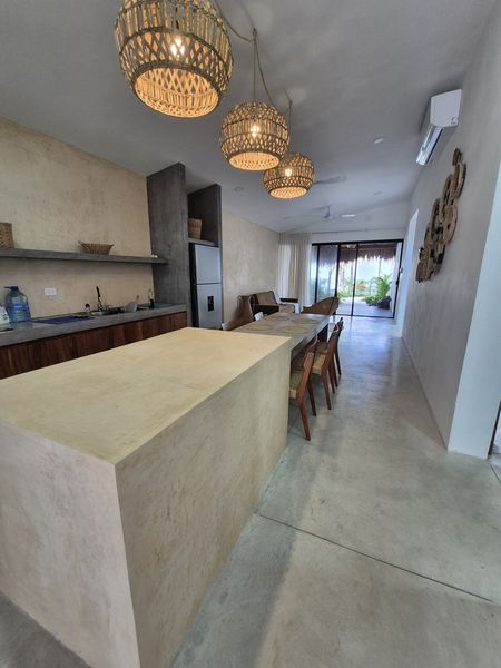 Vendedor está pidiendo $385,000 USD. Esta casa playera es de nueva construcción, con estacionamiento fuera de la calle y una terraza con vista a la piscina rematada con una palapa. Esta residencia de un solo nivel ofrece 3 dormitorios más 2 con un plano de planta de concepto abierto. Las grandes ventanas permiten que la luz del sol inunde el interior del estilo rústico moderno de esta casa. El jardín trasero está completamente cercado para mayor privacidad y contiene una gran piscina con filtro. El equipo de la piscina y el lavadero se encuentran más allá de la piscina. ¡Ubicada convenientemente cerca de la glorieta de la policía en la entrada de Chelem y a solo unos pasos de nuestra Costa Esmeralda y playas de arena blanca!