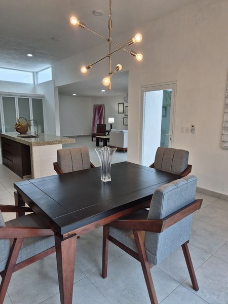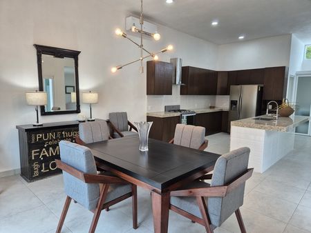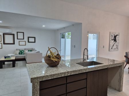 ¡Increíble oportunidad en la playa de Chuburná Puerto! Construcción completamente nueva diseñada para una vida informal pero elegante. Completamente amurallada para su privacidad y seguridad. En el interior, le encantará el plano de planta de concepto abierto bien pensado con techos altos y mucha luz natural. Dos dormitorios se encuentran en la casa principal, ambos en suite con vestidores también. Las puertas corredizas del piso al techo brindan acceso al área de entretenimiento del patio trasero que rodea una atractiva piscina. Una suite separada de un dormitorio que también cuenta con una sala de estar aparte del dormitorio. Esta suite se puede alquilar por separado para generar ingresos adicionales si así lo desea. ¡Toda la casa ha sido diseñada en torno a un estilo neutro para complacer los gustos de todos! Esta propiedad corre de calle a calle, por lo que se puede acceder a ella desde cualquier dirección. Hay estacionamiento ilimitado para vehículos en la parte trasera. También puede guardar todos sus juguetes acuáticos, incluidos botes y motos de agua. ¡Eche un vistazo a esta hermosa casa!