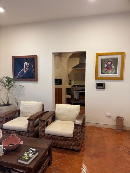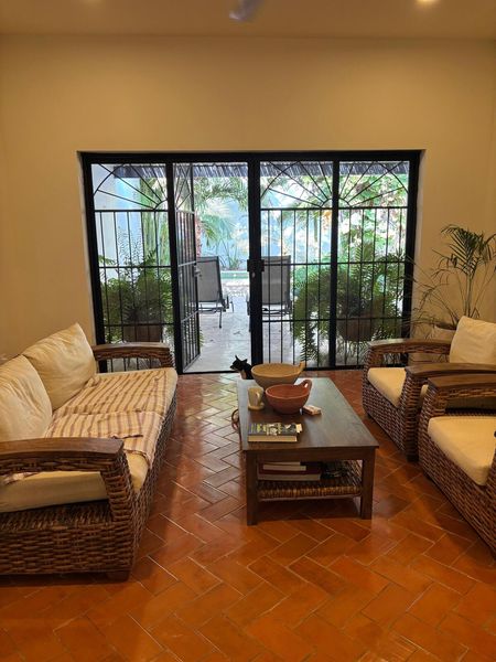 El vendedor está pidiendo $7,000,000 pesos. A dos cuadras del mercado de Santiago, en una calle tranquila, se encuentra ubicada esta magnífica casa de un piso. Al frente tiene un lindo jardín y cochera techada con portón eléctrico y espacio para 3 vehículos. Cuenta con sala y comedor muy amplios, hermosos ventanales, cocina con alacena, área de lavado, 3 habitaciones con closet, dos baños y estudio. En la parte trasera de la casa se encuentra una terraza con techo de bambú, piscina y un hermoso jardín tropical.