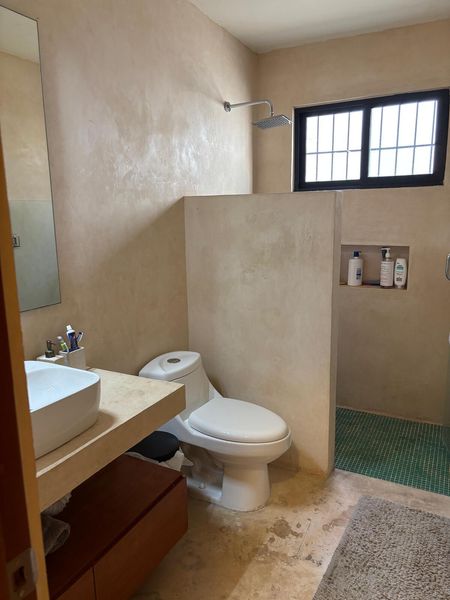 La casa fue restaurada en 2021, los pisos son de chukum, todas las instalaciones son nuevas, los baños de la regadera son de mosaico veneciano, calentador, todas las habitaciones cuentan con ventilador y minisplit, tiene cisterna, dos tinacos e hidroneumático.