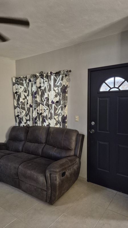 El vendedor pide $3,250,000 pesos. ¡Muchas mejoras! Para empezar, notará el garaje cerrado para dos autos. Los pisos están cubiertos con azulejos de porcelana texturizada, diseñados para formar un camino sinuoso hacia la puerta principal y el patio trasero con portón, donde encontrará suficiente espacio para construir una piscina. Una vez dentro, observe la vista abierta que da a la cocina, el comedor y la sala de estar. La cocina cuenta con un nuevo fregadero de acero inoxidable con grifo de diseño. Encimeras de granito y una barra de desayuno. La lámpara de araña de piedra de diseño en el comedor se transfiere. Lo mismo ocurre con los ventiladores de techo y los aires acondicionados minisplit en toda la casa. Una espaciosa recámara en la planta baja tiene un armario empotrado. El baño renovado de la planta principal cuenta con espacio de almacenamiento y una ducha tipo lluvia. Tiene acceso al patio trasero a través del pasillo de la recámara o por el costado de la casa. La escalera al segundo nivel tiene escalones cubiertos con azulejos a juego y pasamanos de vidrio con postes de aluminio. En la planta superior hay dos recámaras espaciosas y una terraza exterior que podría convertirse en una cuarta recámara si es necesario. El techo se acaba de sellar contra la entrada de agua. Se pintó el interior y el exterior con pintura nueva. Se transfirieron todas las cortinas.