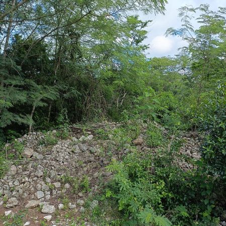 Propietario pide $450,000 pesos. Este lote en los adentros de Tixkuncheil tiene ya una finca construida enfrente en un lote similar y está invitando a su próximo dueño a hacer lo mismo. La calle llega hasta el lote y la luz eléctrica se encuentra a 180 metros. Las casas de campo con frutales es la vocación de esta zona que se está desarrollando para personas que tengan lotes con sus villas de descanso.