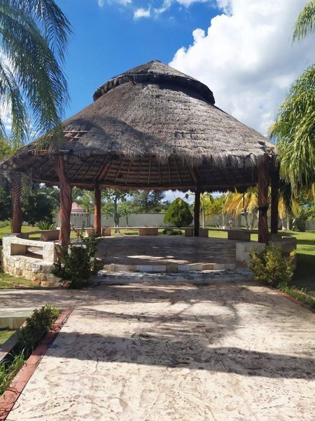 El dueño pide $35,000,000 pesos. En las afueras de Mérida, pero a 10 minutos de uno de los principales centros comerciales y hospital de Mérida nos encontramos con esta finca que por su paisajismo le graba su nombre en todos los sentidos a la persona que lo visite. Con barda en todo el perímetro, palapas, piscina, filtros, jacuzzi, resbaladilla de agua y bar, baños para hombres y mujeres, zona con jaulas para pájaros, juegos infantiles, 16 estanques con peses y lirios acuáticos exóticos, árboles frutales y diferentes palmas exóticas difíciles de encontrar para la mayoría. Iluminación con 400 luces led por toda la propiedad. Un camino de entrada privilegiado. Si no desea construir nada puede albergar 140 vehículos estacionados.
