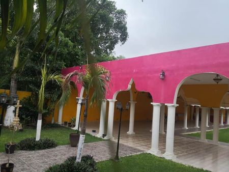 Vendedor Pide $ 7,500,000 pesos. Estilo Gran Hacienda. Actualmente configurado como un centro de eventos con una gran piscina y pasillos cubiertos con espacio para asientos y mesas para banquetes. Mucho estacionamiento para bodas o reuniones familiares. Edificios y jardines bien cuidados. Un dormitorio sirve como oficina y otro todavía se puede utilizar como dormitorio. Los baños comerciales para hombres y mujeres tienen varios puestos. Siga usando esta propiedad como ahora está configurada o conviértala nuevamente en una gran residencia unifamiliar en Caucel, uno de los suburbios más populares del norte de Mérida.