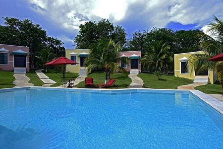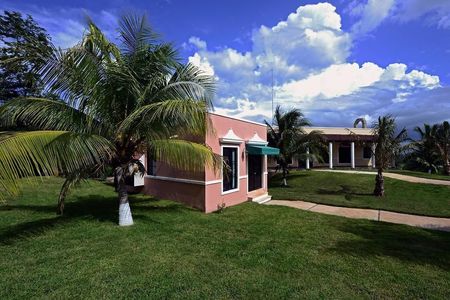 Preciosa hacienda por la que se piden $30, 000,000 pesos. Extensa propiedad con insuperable vista y enclavada en la cima de un cerro, ubicada a tan solo 5 minutos de la Zona Arqueológica de Edzna y a 10 minutos de la ciudad de Campeche, consta de 10 cuartos en forma de pequeñas cabañas con baño, bañera y palapa exterior para cada una de las habitaciones.
