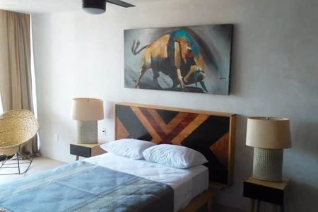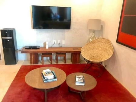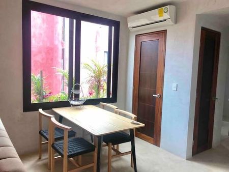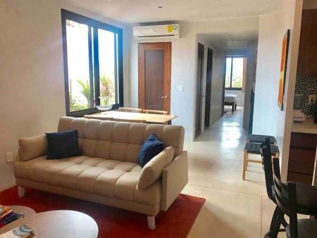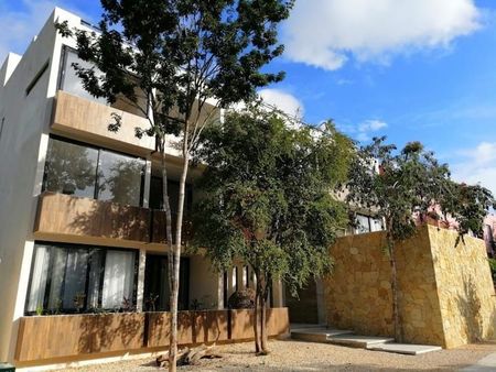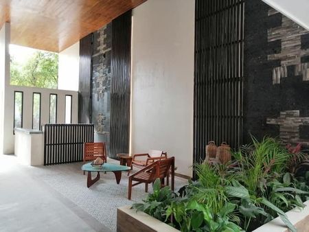 Departamento de lujo a estrenar en Aldea Zama Tulum. Disfrute de la entrada segura e impresionante al área común. Recepción. Techos altos dobles en el lobby amueblados con muebles de madera natural de la zona. La piscina y su área de entretenimiento se complementan con un bar que te espera para organizar tu próxima fiesta en la piscina. También hay una pequeña cocina y baños de piscina para uso de los propietarios. Este apartamento está ubicado en el segundo piso de este nuevo complejo que también cuenta con un gimnasio para uso de los propietarios. Camina hasta restaurantes, supermercados y tiendas desde esta ubicación en Tulum.